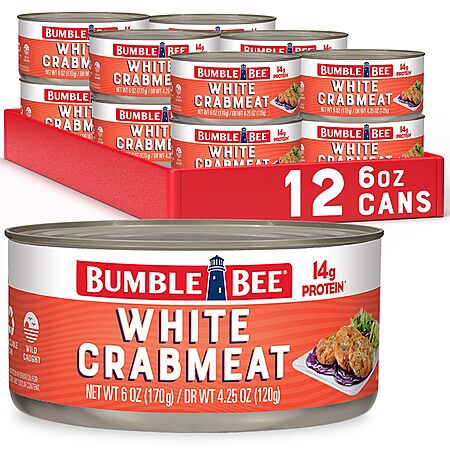 Bumble Bee White Flake Crab Meat in Water, 6 oz Can 14g Protein & 1g Carb Per Serving Wild Caught, Flaky Drain Before Use 6 Ounce (Pack of 12)~$26.06 After Coupon & S&S @ Amazon