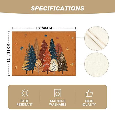 Set of 4 Cloth 12x18 Artoid Mode Orange Trees Leaves Hello Fall Placemats $3.99 + Free Shipping w/ Prime or on $35+