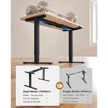TOPSKY Dual Motor Electric Height-Adjustable Standing Desk Frame (Fits up to 70.8" x 31.5" Table Tops, up to 225-lbs) $111.42+ Free Shipping