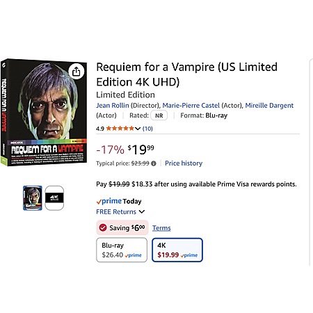 Requiem for a Vampire (US Limited Edition 4K UHD) $14 with coupon YMMV Maybe region specific Amazon.com