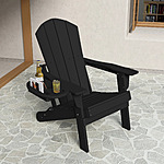 FOOWIN Folding HDPE Adirondack Chair w/4 in 1 Cup Holder Tray Weather Resistant Lawn Outdoor Firepit Chairs, Black $89.99