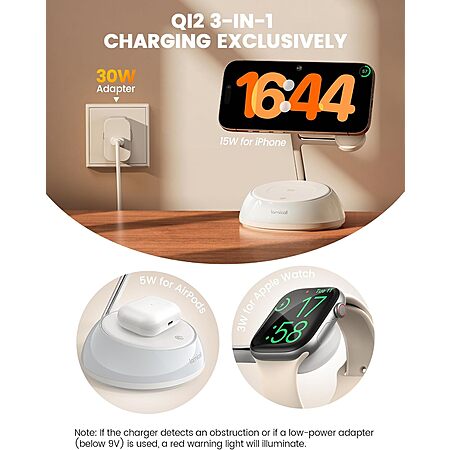 • Enjoy the ultimate 15W high-speed charging for your iPhone, along with 5W consistent outputs for your AirPods and 3W for Apple Watch, all enhanced by the cutting-edge Qi2 certification technology. Certified for safety and efficiency, this Qi 2 wireless charger stand delivers up to 2x faster charging speeds and is fully compatible with MagSafe and all Qi-enabled devices.