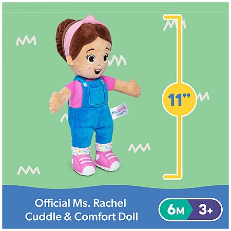 - OFFICIAL MS. RACHEL TOYS: Super-soft, huggable, and squeezable plush toy doll featuring Ms. Rachel's friendly face helps babies and toddlers feel safe and secure. For ages 6 months and up
