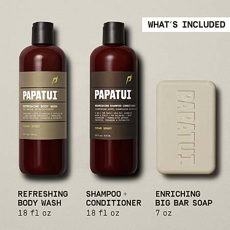 Papatui Holiday Gift Set, Men's Care Shower Pack, Shampoo Conditioner, Body Wash, Big Bar Soap, Cedar Sport Scent, Full Sizes, Limited Edition $10 at Walmart