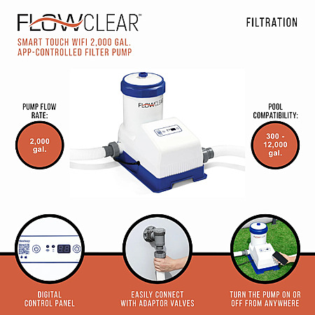 About this item- Smart Control: Wifi pump controlled by the Bestway Smart Hub App, allowing remote operation from anywhere.