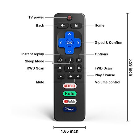 (Pack of 2) Replacement for Roku-TV-Remote-Control, for Roku Series Smart TVs (Not for Roku Stick, Box, Premiere and Players) $5.97 FS w/ PRIME