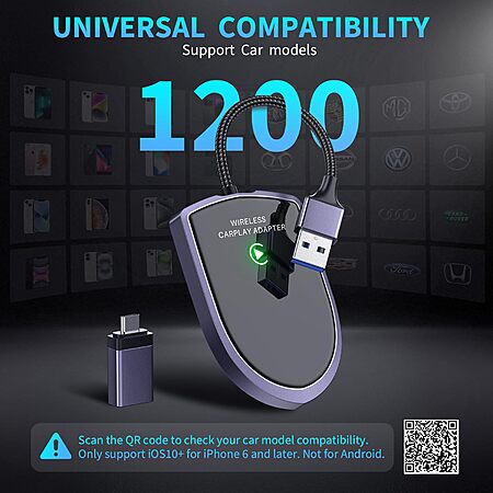 Model: Wireless CarPlay Adapter for Apple iPhone (2025 Upgrade) – Instant Wireless CarPlay, Ultra-Low Latency, Stable Connection, Mini Bluetooth Dongle for iOS 10+ & Cars 2016+, Plug & Play Type-C