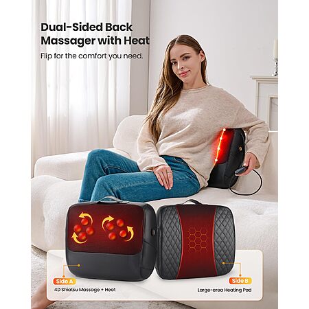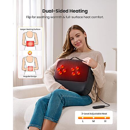 KNQZE 3-in-1 Shiatsu Back Massager with Heat & Lumbar Support - $19.99