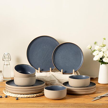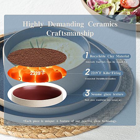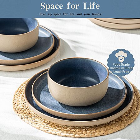 Dafuceramic 12 Pieces Dinnerware Sets,Plates and Bowls Sets,Handmade Reactive Glaze Dishes Set for 4 (3 color options) - $39.99
