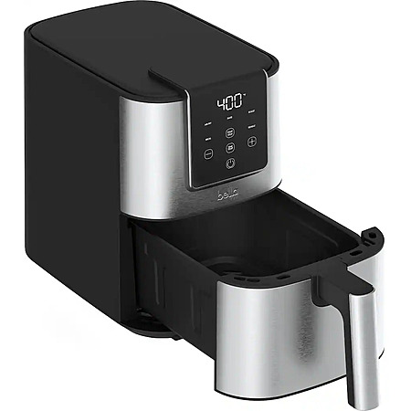 The bella PRO 4-qt. Touchscreen Space Saving Air Fryer will fit perfectly in your kitchen. Featuring 5 preset settings and an adjustable temperature up to 400°F, you can easily cook your favorites for friends and family (up to 3.3 lbs. of food). The 60-minute auto shut-off timer ensures precise cooking results every time. Made without PFAS, PFOA, PTFE, Lead, and Cadmium, the EverGood Ceramic Nonstick Coating gives you confidence & peace of mind when using this air fryer, while dishwasher-safe parts simplify the cleanup process and save you valuable time. Powered by high-performance circular heat technology, this air fryer evenly circulates heat for quick, crispy, and perfectly cooked food.