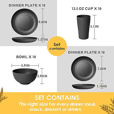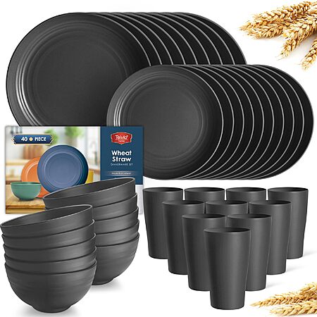 Teivio 40-Piece Kitchen Plastic Wheat Straw Dinnerware Set, Service for 10, Black - $7.99