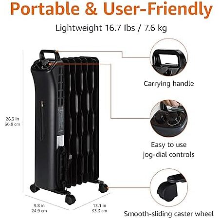 $41.60 | Amazon Basics Oil Space Heater, 1500W, Black at Amazon