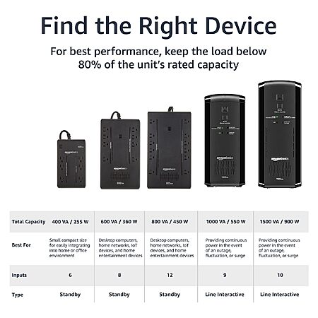 Model: Amazon Basics Line Interactive UPS 1500VA 900 Watt Surge Protector Battery Power Backup, 10 Outlets, Black