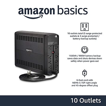 Amazon.com has Amazon Basics UPS Battery Backup & Surge Protector 1500VA/900W, 10 Outlets, Line Interactive Uninterruptible Supply, for Power Outage Protection, Black on sale for $114.37. Shipping is Free.