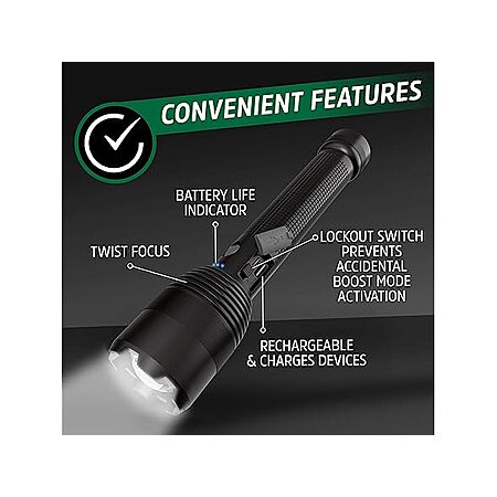 - High Lumen Flashlight: Energizer 10000XT-R Rechargeable LED Tactical Flashlight with extreme brightness and rugged construction.