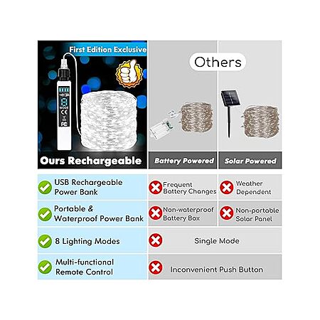 $14.99*:Lakumu Operated String Lights,132FT(66FT*2)