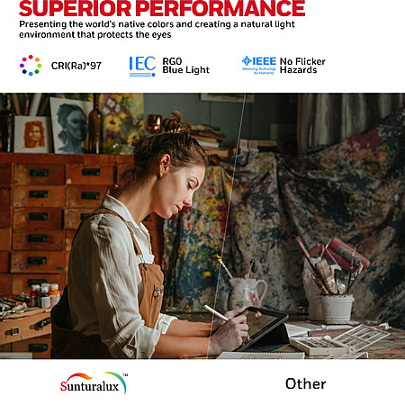 - Eye-safe: RG0 grade, flicker-free, soft light, no blue light hazard
