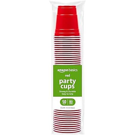 Model: Amazon Basics SMALL 9oz Disposable Plastic Party Cups, Red, 50 Count