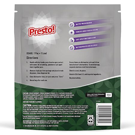 Amazon Brand - Presto! Triple Action Dishwasher Pacs, Lemon Scent, 70 Count~$8.03 With S&S @ Amazon~Buy 4 & Save More!