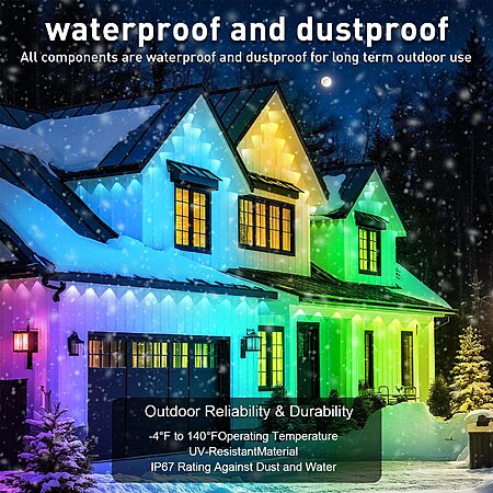 150FT Permanent Outdoor RGB Lights - Waterproof Smart LED Eaves Lights with App/Remote Control, Music Sync & DIY Scenes $34.57
