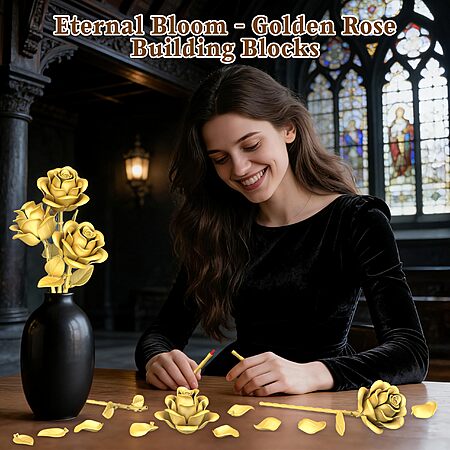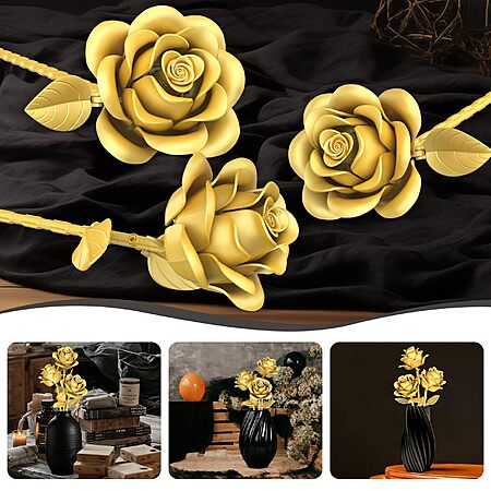 195-Piece Qifun Metallic Gold Roses Flower Building Set (3 Roses) $9.99 + Free Shipping w/ Prime or on $35+