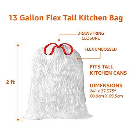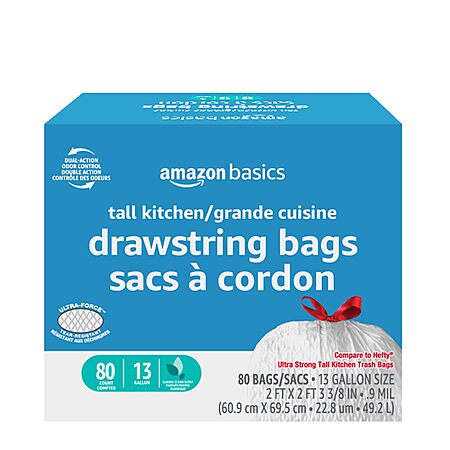 80--Count 13-Gal Amazon Basics Ultra-Force Tall Kitchen Drawstring Trash Bags(Classic Clean Scented) $7.74 w/ S&S + Free Shipping w/ Prime or on $35+