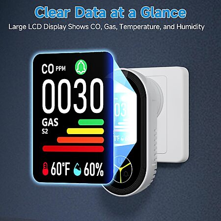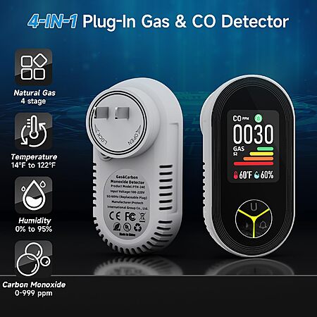 I just found this plug-in carbon monoxide detector with temperature & humidity. Seektrain is an unknown seller, but product has good reviews and certifications. Search for model "PTH-24E" and you can find Protech as the manufacturer (they have plenty other detectors)