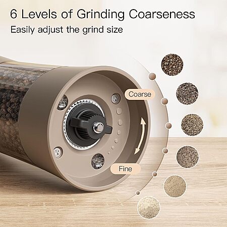 Ultrean Inc via Amazon [amazon.com] has Ultrean Rechargeable Electric Salt and Pepper Grinder Set w/ LED Light and 6 Coarseness Settings on sale for $19.99 - an additional 50% = $9.99 when you apply code APYZKAMI at checkout. Shipping is free w/ Prime or on $35+.