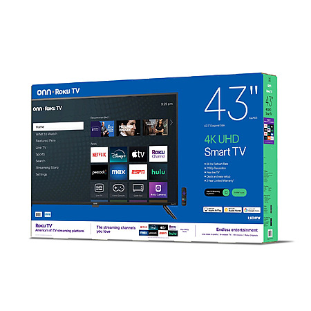 onn. 43" 3840x2160 4K UHD 60Hz HDR LED Roku Smart TV $138 + Free Shipping