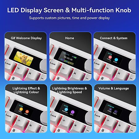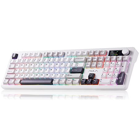 AULA F106PRO Full Size Wireless Hot-Swappable Mechanical Keyboard with Media Knob & Screen (Blaze Switch, Black/White/Grey) $67.98 + Free Shipping