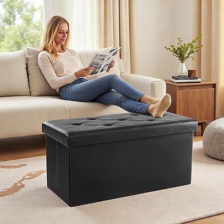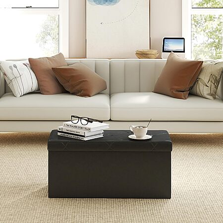 NEWBULIG Folding Storage Ottoman Bench Synthetic Leather (various colors) - $23.39
