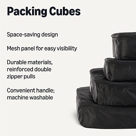 THOUGHTFUL, USER-FRIENDLY DESIGN: The mesh top panel keeps contents visible, so you can easily identify and access items without opening each cube. Each cube features a convenient webbing handle for easy handling, and they're machine washable for easy care.