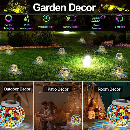 Aukora Color Changing Solar Powered Glass Ball (Mosaic Glass) $11.49 + Free Shipping w/ Prime or on $35+