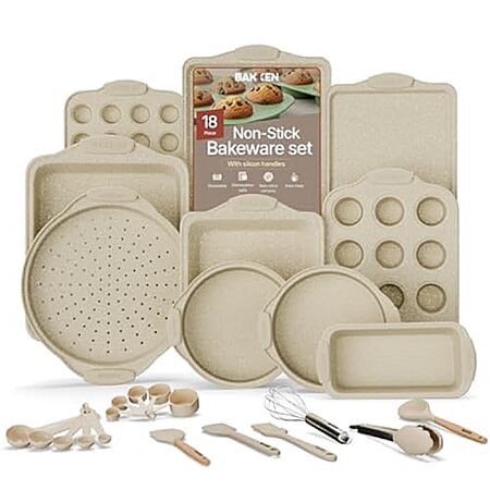 18-Piece Bakkenmaster Nonstick Carbon Steel Bakeware Set (White Marble) for