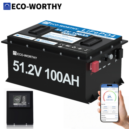 ECO-WORTHY 48V 100Ah LiFePO4 Golf Cart Battery w/ Bluetooth Monitor on sale for $749.99 - $112.50 off code