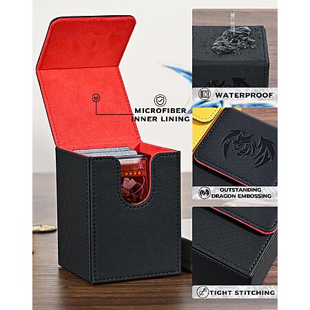 UAONO Card Deck Box for Yugioh MTG, 100+ Deck Case with 2 Dividers, PU Leather Storage Box, Compatible with Collectible Trading Cards (Black & Red, Sky Dragon) $9.99