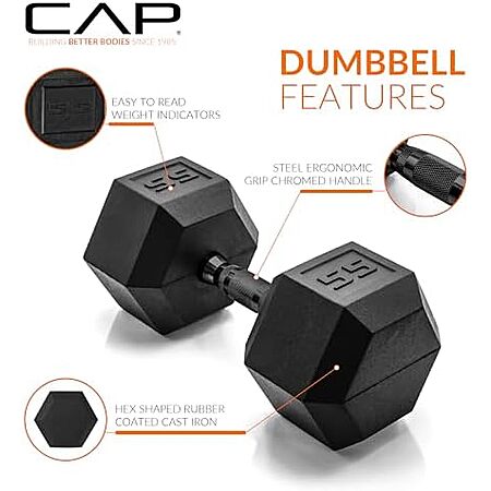 Model: CAP Barbell 55 LB Coated Hex Dumbbell Weight with Black Handle