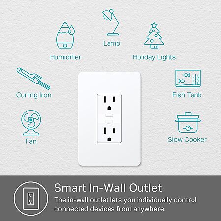 $15.98: Kasa Smart Plug KP200, In-Wall Smart Home Wi-Fi Outlet Works with Alexa, Google Home & IFTTT, No Hub Required, Remote Control, ETL Certified , White, 1 Pack