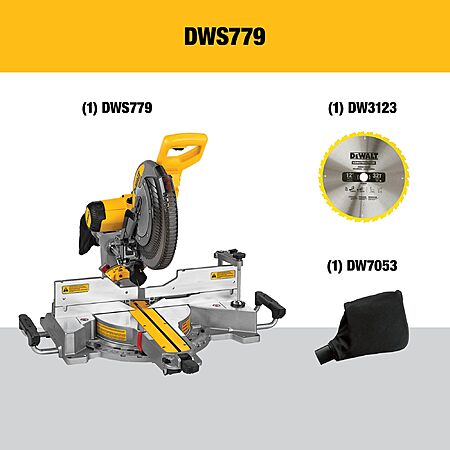 $381.60: DEWALT Miter Saw, 12 Inch Double Bevel Sliding Compound Miter Saw, Includes Blade Wrench and Clamp, Increased Crosscut Capacity, Powerful 3800 RPM Motor 15 Amp (DWS779)