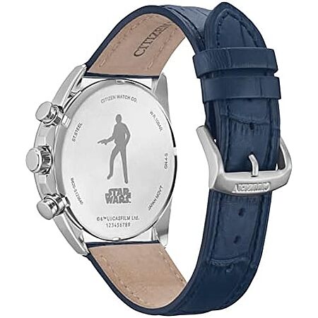 $225 | 44mm Citizen Eco-Drive Men's Star Wars Millennium Falcon Stainless Steel Chronograph Watch, Blue Leather Strap, Luminous (Model: CA4281-00W) at Amazon