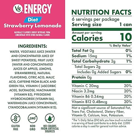 Model: V8 +Energy Diet Strawberry Lemonade Juice Energy Drink, 8 fl oz Can (6 Pack)