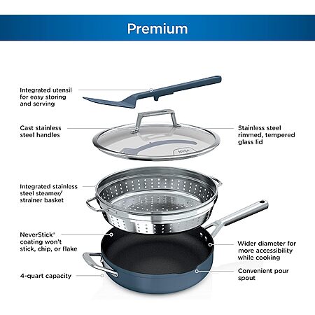 Available Colors:Features:- 4-quart go-to pan replaces a stainless-steel fry pan, nonstick fry pan, sauté pan, skillet, saucier, saucepan, steamer, strainer, spatula, cast iron skillet, roasting pan, and baking dish