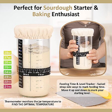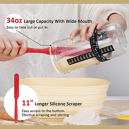 $14.49*:Sourdough Starter Kit, 34oz Jar, 2 Proofing Baskets, Thermometer, Tracker, Metal Scraper, Complete Baking Set for Beginners