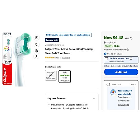 Offer valid on Colgate Total Manual Toothbrush for select varieties, 1 ct only. Offer includes the following: • Colgate Total Foaming Clean Soft Manual Toothbrush • Colgate Total Foaming Clean Medium Manual Toothbrush This purchase cannot be combined with coupons for the same product