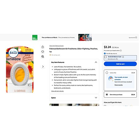 Febreze Bathroom Air Freshener, Odor-Fighting, Peaches, 1ct