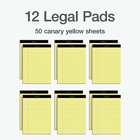 Oxford Premium Legal Pads, 12 Pack, Premium Note Pads, 50 Legal Rule 8.5" x 11" Sheets, Canary Yellow $11.06 FS with Prime