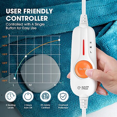 $17.99*:BOILEAU Electric Heating Pad, 24"x33", Neck, Shoulders & Back Pain Relief, Self-Care Gift for Men & Women(Blue/Grey/Purple)