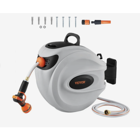 VEVOR 5/8" x 65' Wall-Mounted Retractable Garden Hose Reel w/ 180° Swivel Bracket & 9-Pattern Nozzle $54.40, 1/2" x 84' $58.90 + Free Shipping