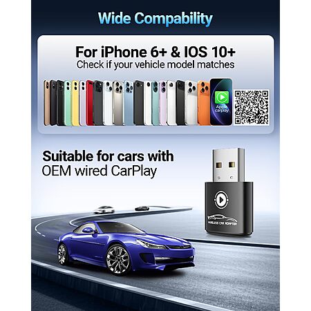 Wireless CarPlay Adapter for Apple iPhone(2026 Upgraded) Mini Design, Converts Factory Wired to Wireless Adapter for CarPlay, Plug and Play $19.99