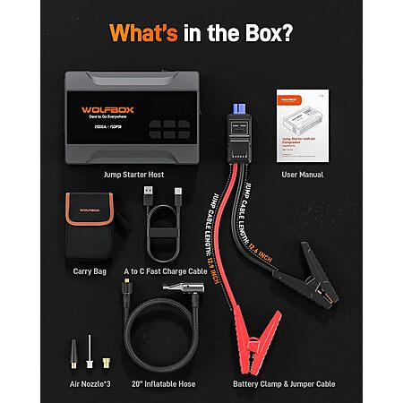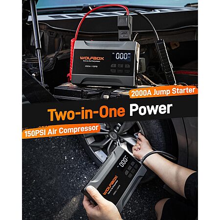 Prime Members: WOLFBOX 2000A 12V 10000mAh Portable Car Jump Starter w/ 150PSI Air Compressor $40.59 + Free Shipping